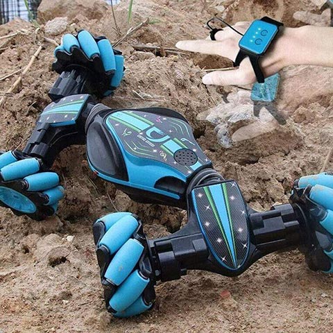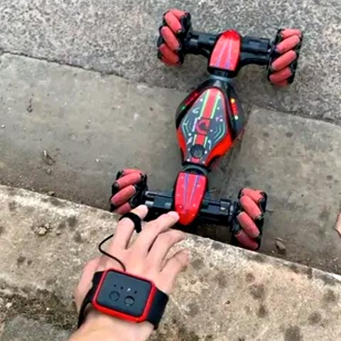 Два вида управления машинкой: классический пульт-джойстик и инновационный браслет на руку. Такой способ управления вызывает большую заинтересованность не только у детей, но и у взрослых.