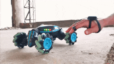 Два вида управления машинкой: классический пульт-джойстик и инновационный браслет на руку. Такой способ управления вызывает большую заинтересованность не только у детей, но и у взрослых.